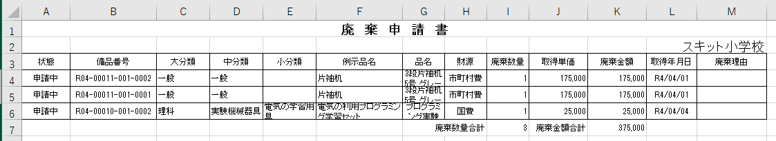 廃棄備品検索結果一覧を出力する