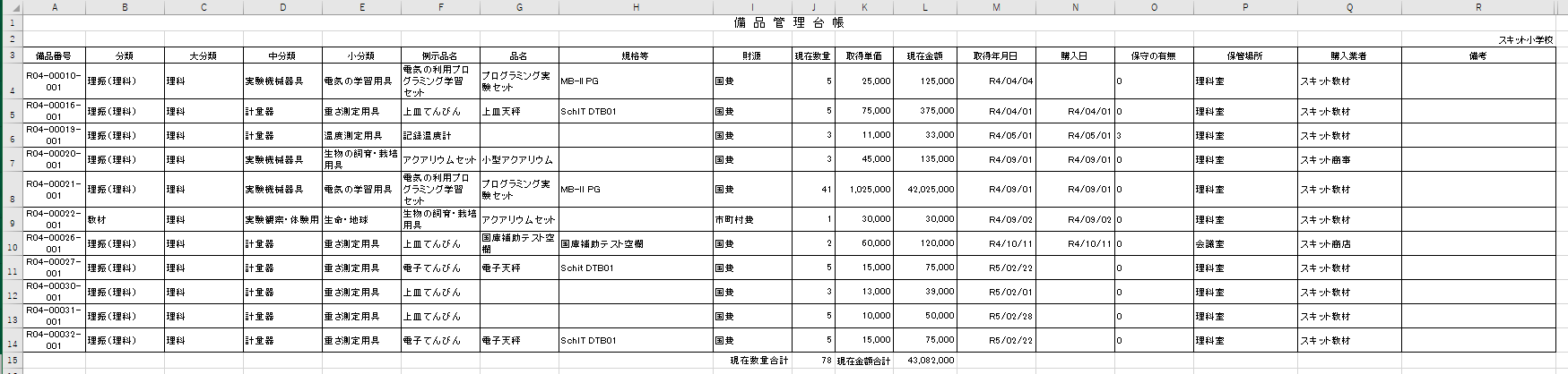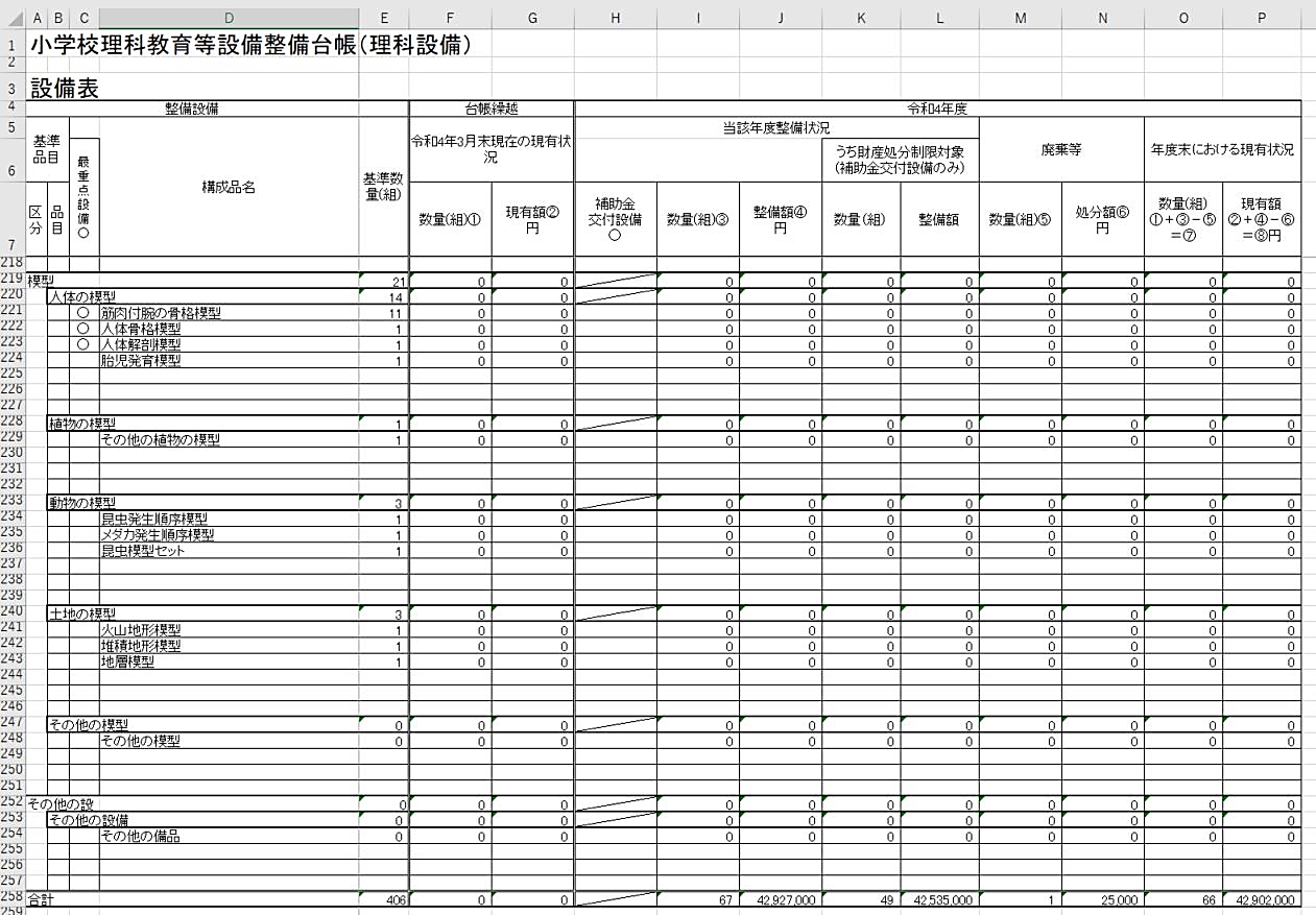 理科教育設備台帳総括表を出力する