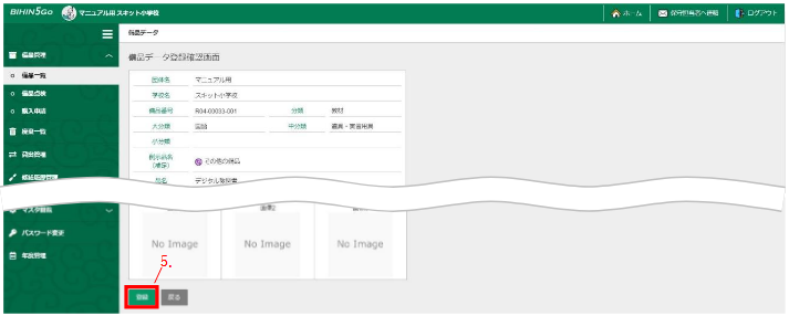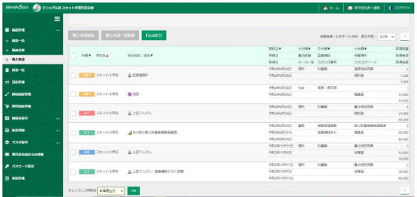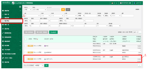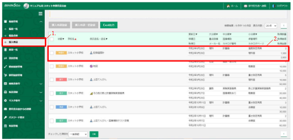 - 左メニュー「備品管理」から「購入申請」を押下します。