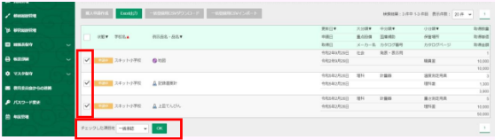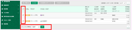 - 計画表に出力する申請データにチェックを入れます。