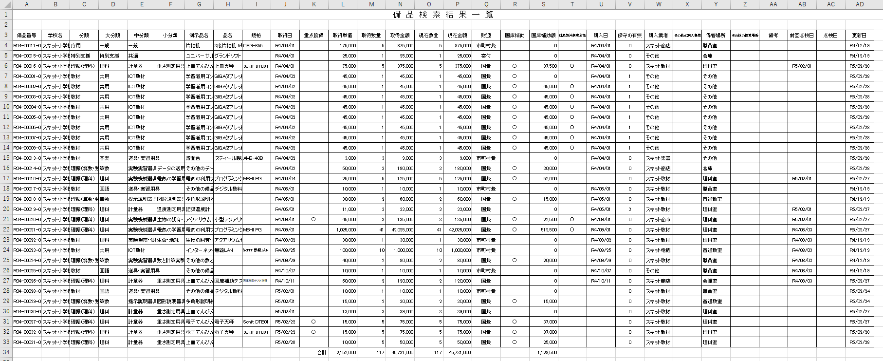 備品検索結果一覧を出力する