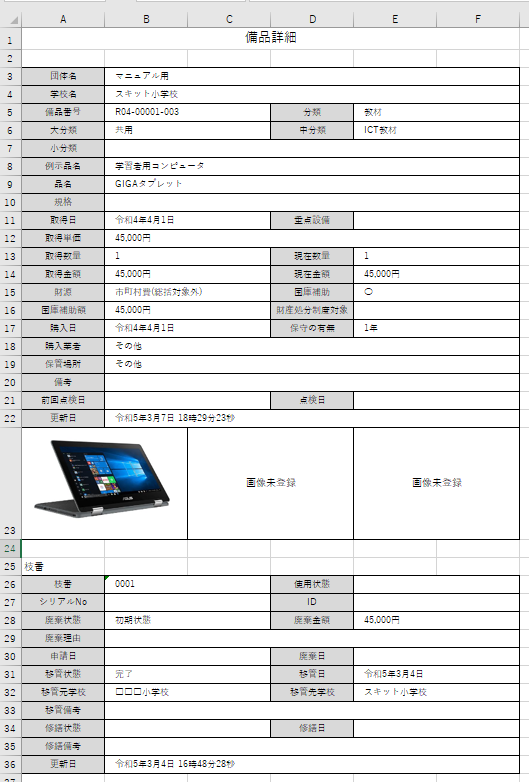 備品詳細を出力する