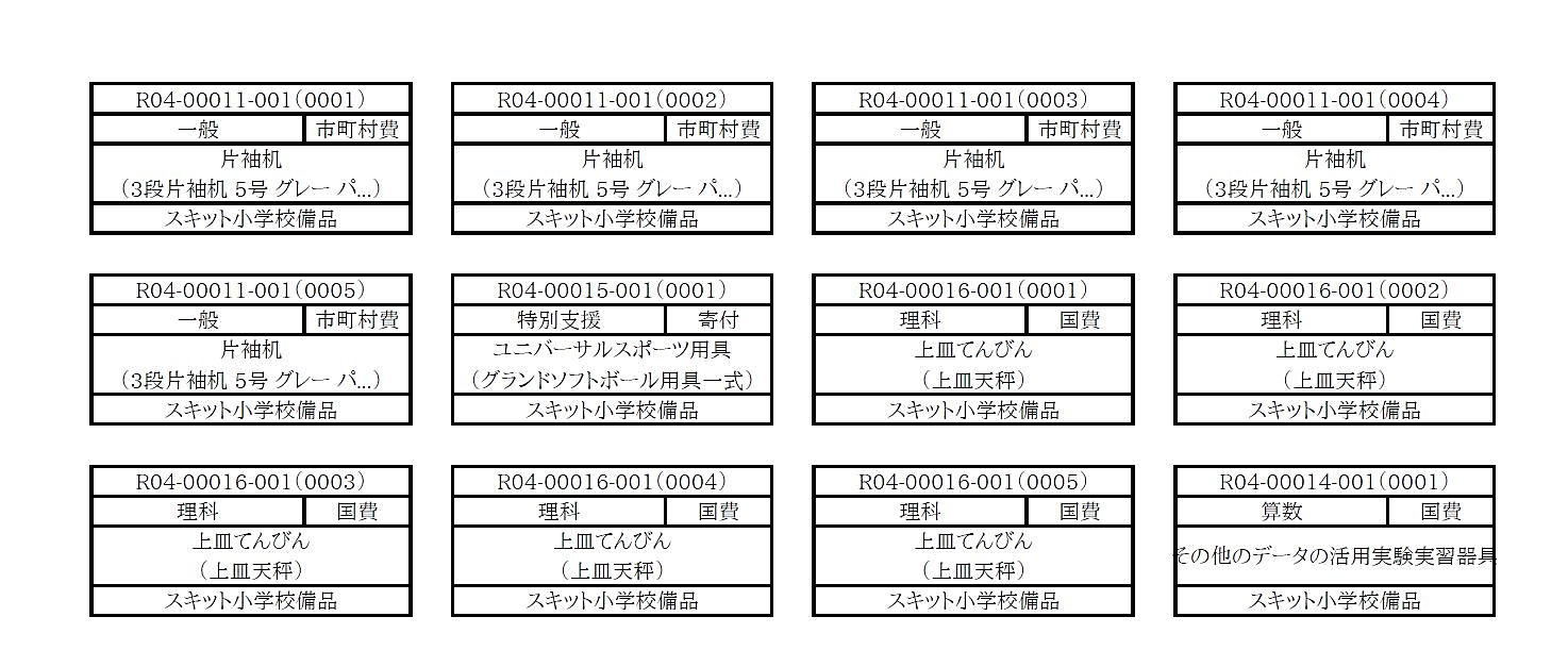 備品QRコードシールを出力する