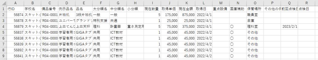 備品管理台帳を出力する