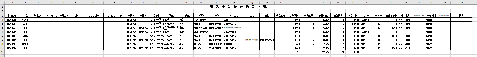 購入申請検索結果一覧を出力する