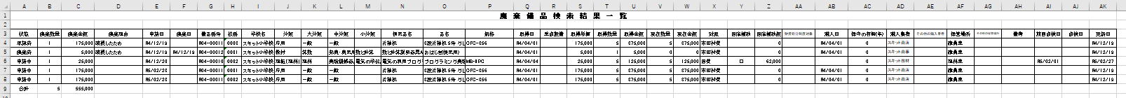 廃棄備品検索結果一覧を出力する