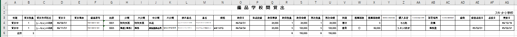 備品学校間貸出を出力する