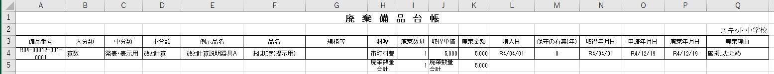 廃棄備品台帳を出力する