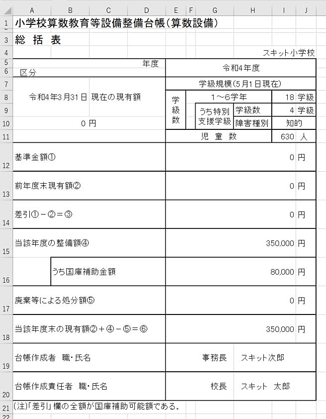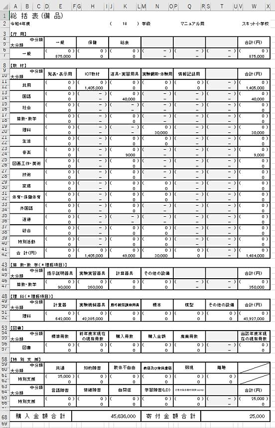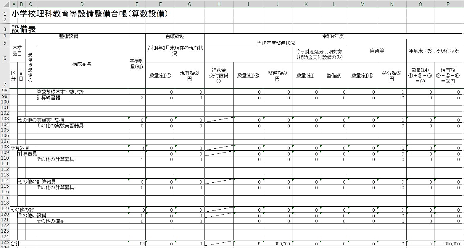 算数・数学教育設備台帳総括表を出力する