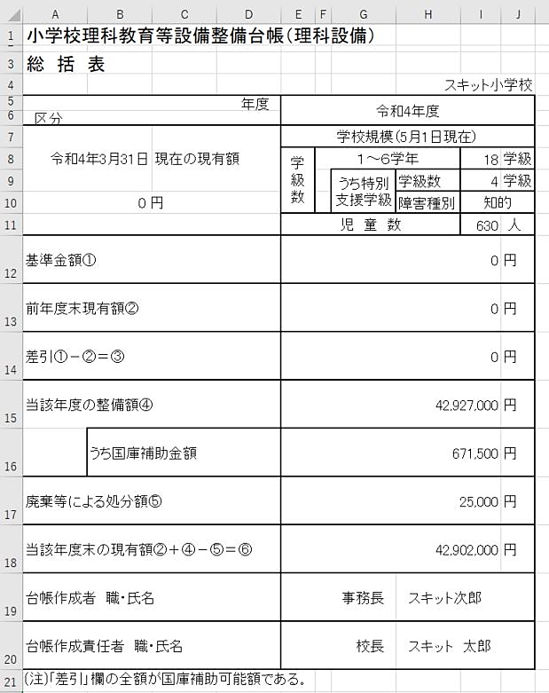 理科教育設備台帳総括表を出力する