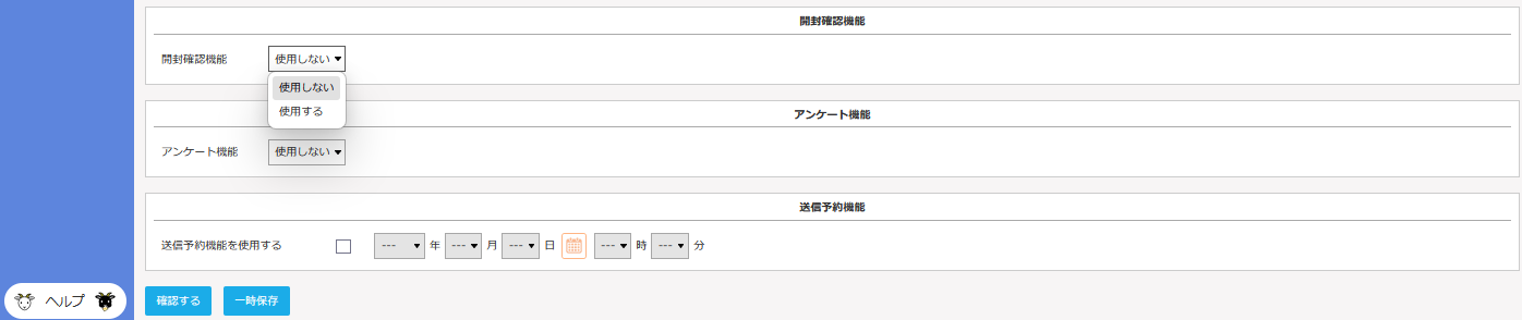 - 開封確認を「使用する」にし、[確認する]をクリックします。