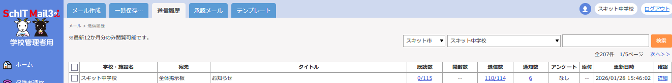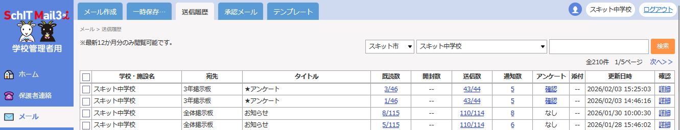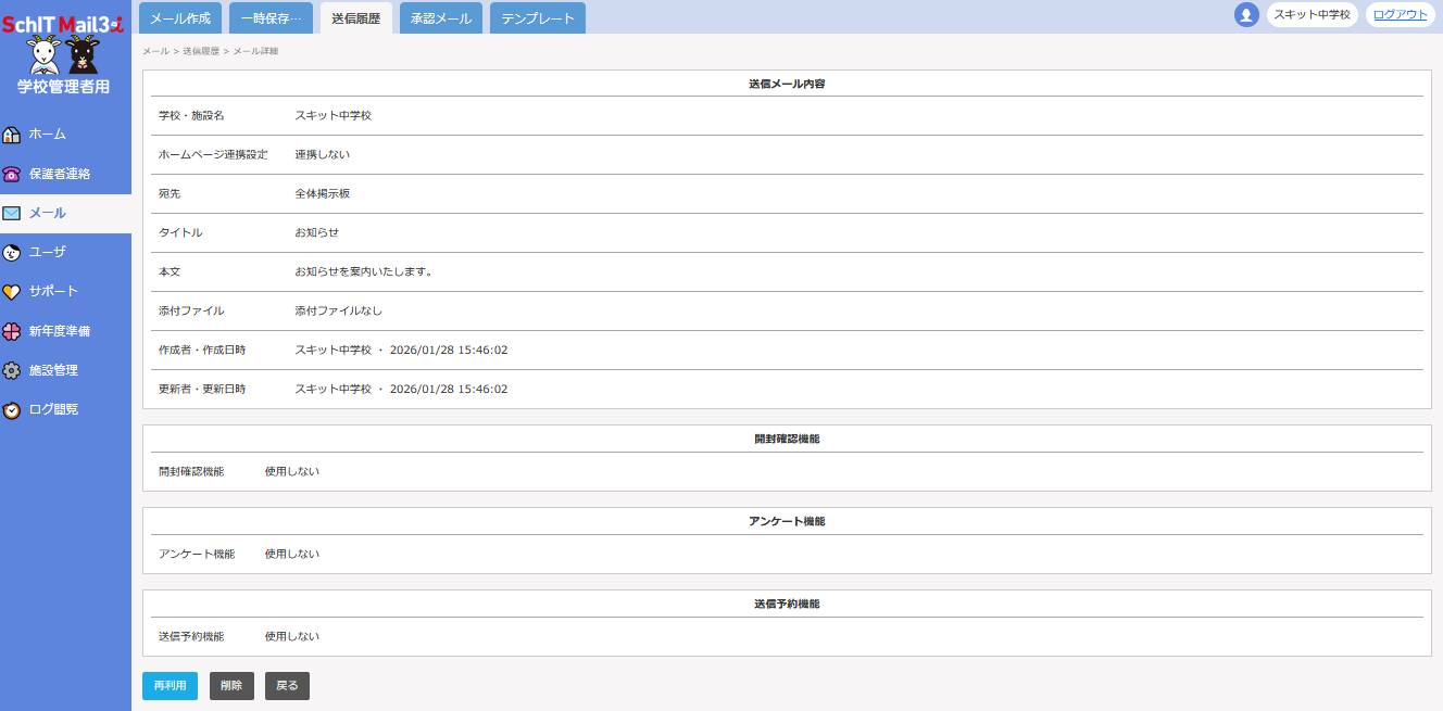 メールの送信履歴を削除すると、一般ユーザの掲示板からメール内容は閲覧できなくなります。