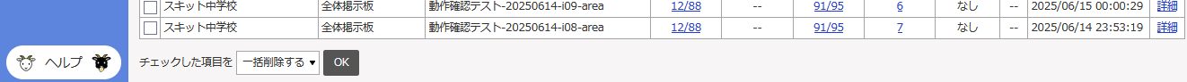 - 一覧の左下にある「一括削除する」の[OK]をクリックします。