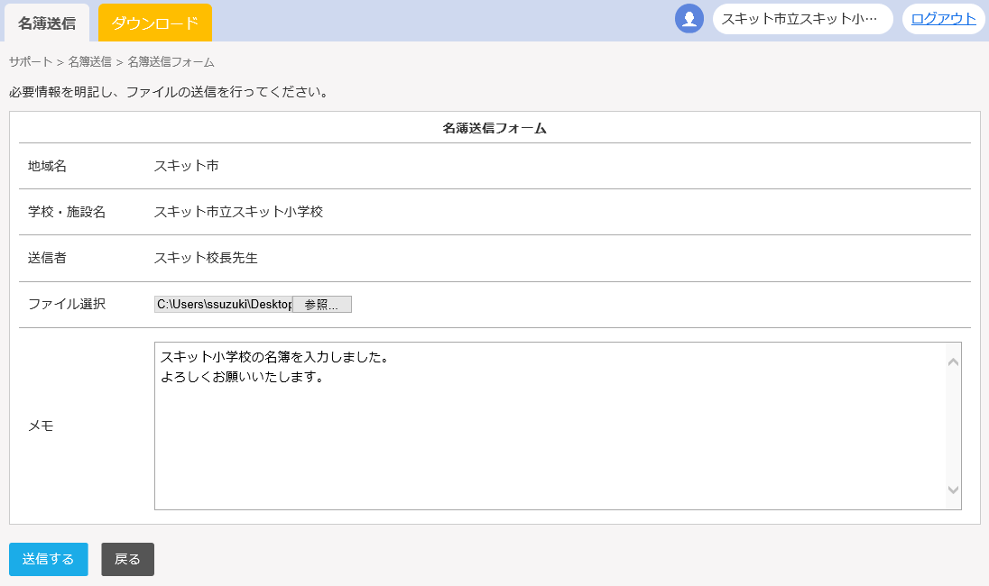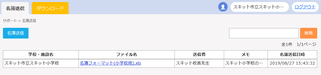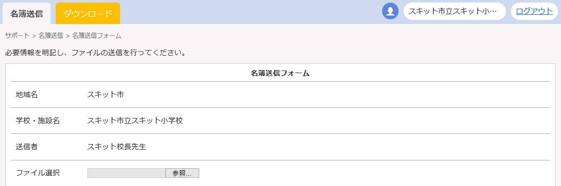 システムからユーザ登録のための名簿フォーマットファイルを送信することができます。