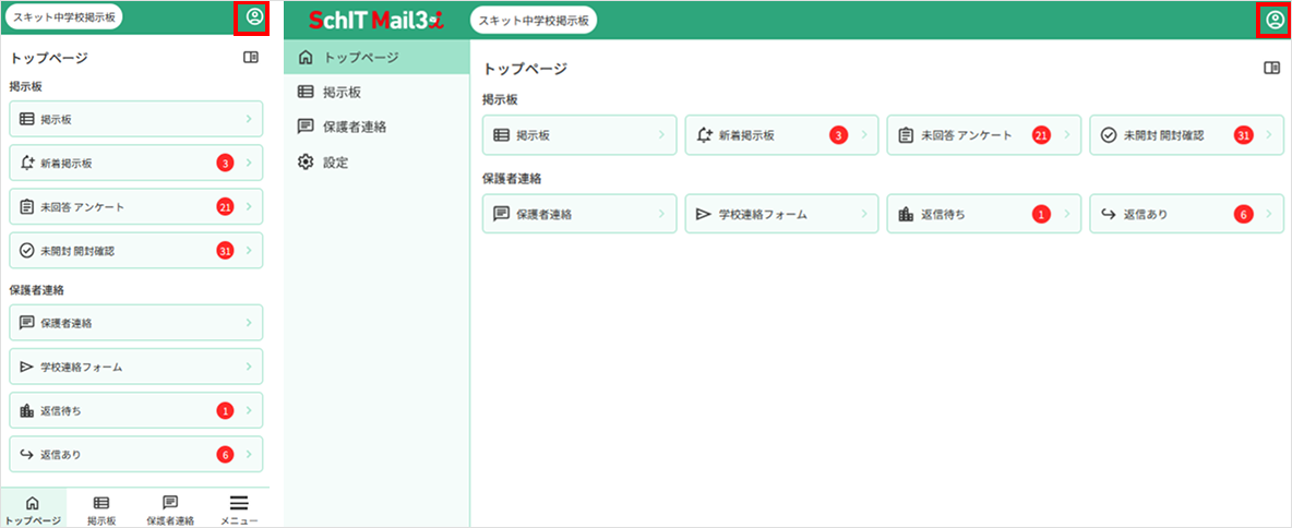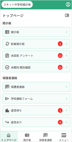 学校から配信されたメールの「掲示板URL」からアクセスしてください。