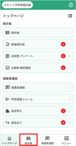掲示板のページを開く