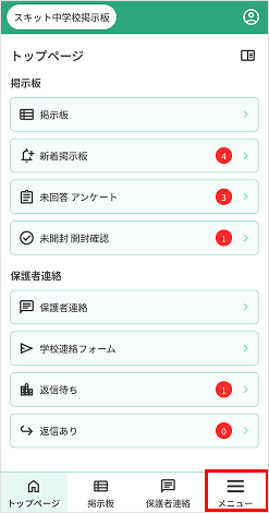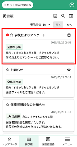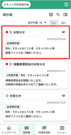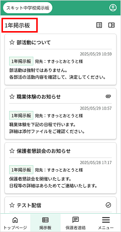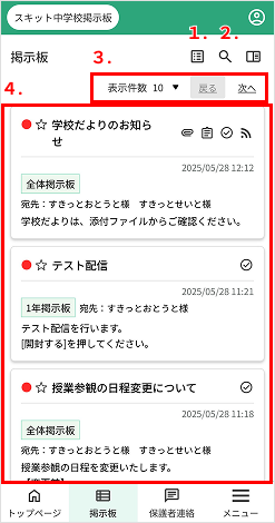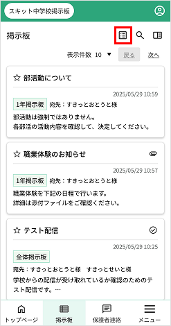 - 掲示板一覧アイコン…掲示板一覧のページへ遷移