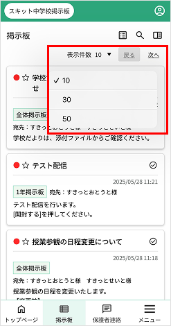 - 配信記事の件数表示…10件、30件、50件表示から選択