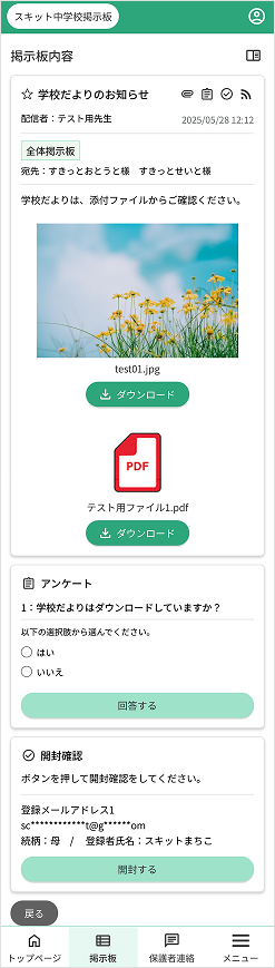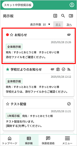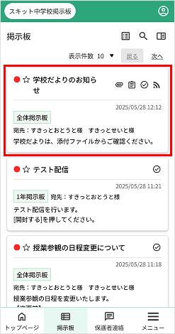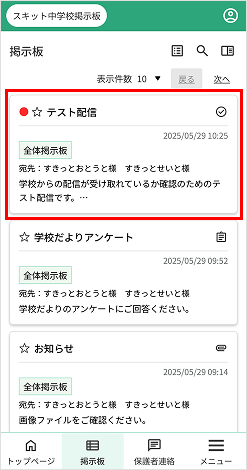 - 配信記事の内容を表示…タイトル、配信日時、掲示板名、本文の一部を表示
