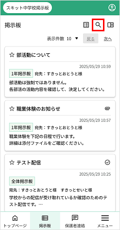 - 検索アイコン…掲示板検索が表示