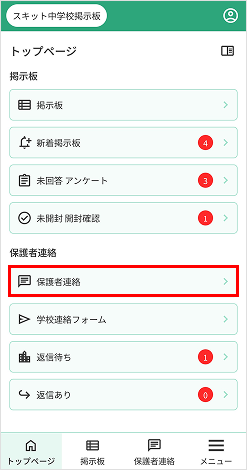 2. 保護者連絡のページが表示されます。
