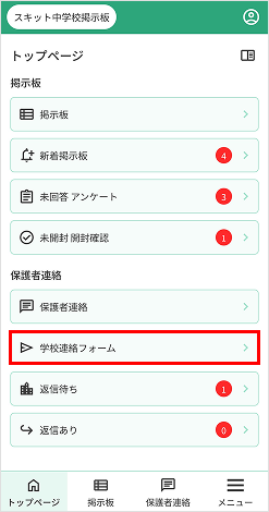 1. [学校連絡フォーム]を押下します。